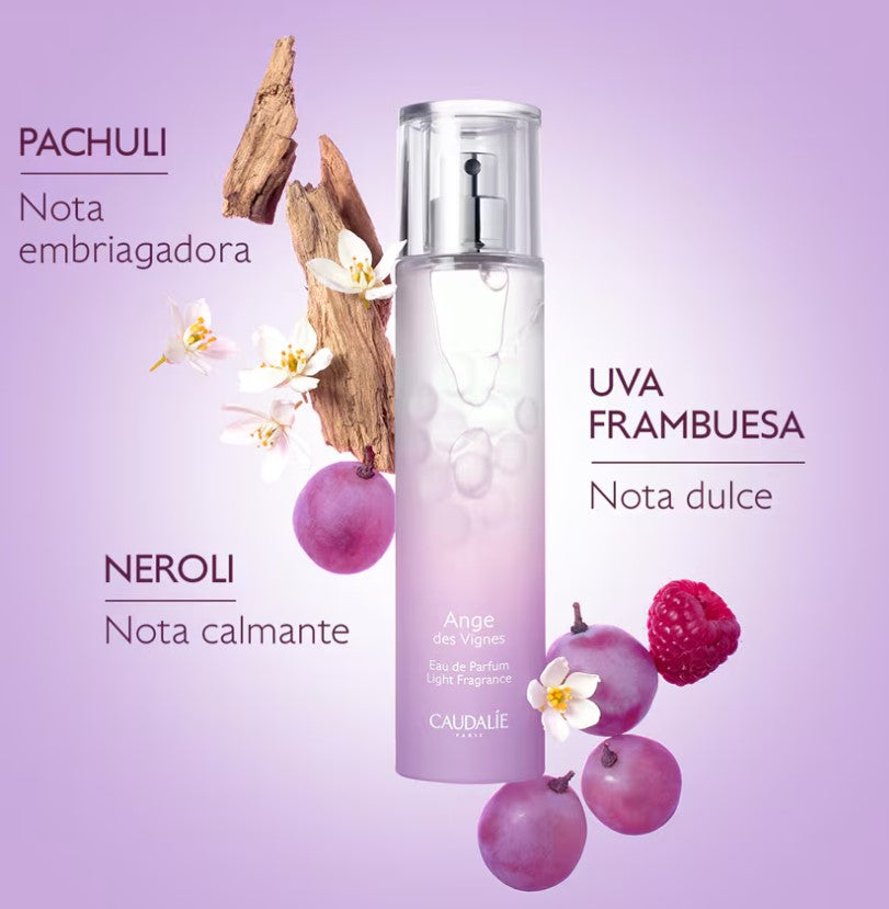 Caudalie Anges des Vignes Eau de Parfum on raikkaan hedelmäinen ja sensuellin lämmin tuoksu, joka kuljettaa sinut viinitarhan keskelle – hetkeen, jolloin aurinko laskee ja ilma täyttyy kypsien rypäleiden ja metsän tuoksuista. Tämä hienostunut tuoksu on täydellinen yhdistelmä makeutta, pehmeyttä ja raikasta elinvoimaa.