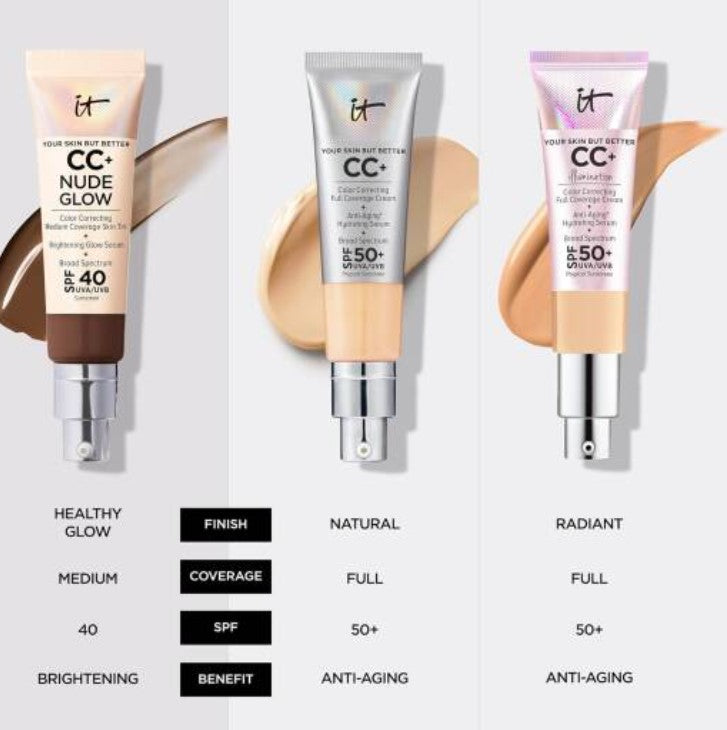 It Cosmetics CC+ Nude Glow on täydellinen yhdistelmä meikkivoidetta ja ihonhoitotuotetta. Tämä kevyt ja kosteuttava CC-voide tarjoaa luonnollisen lopputuloksen, joka kirkastaa ihoa ja tasoittaa sen sävyä ilman raskasta tunnetta. Sävy Fair sopii vaalealle ihosävylle.