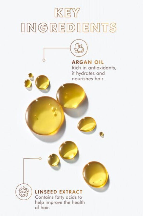 Koostumus: kevyt, silottava öljyseos, jonka avainainesosana on ravitseva arganöljy; imeytyy nopeasti hiukseen eikä jätä tahmeaksi
