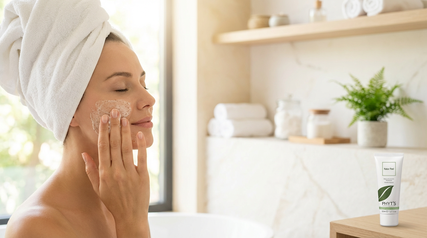 PHYT’S Natur Peel Kuorinta kasvoille 100 ml on tehokas mutta hellävarainen luonnonkosmetiikan kasvojenkuorinta, joka kirkastaa ihoa ja tasoittaa sen pintaa ilman liiallista ärsytystä. Voidepohjainen koostumus yhdistää hienojakoiset kuorivat rakeet ja luonnolliset aktiiviaineet, jotka poistavat kuolleita ihosoluja, pehmentävät ihoa ja edistävät ihon uusiutumista.