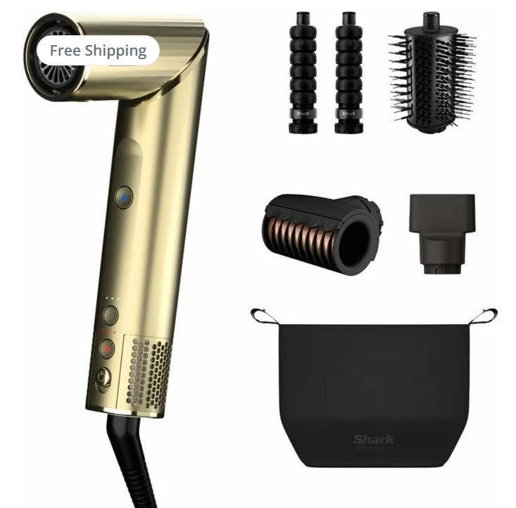 Shark Glam Hiustenmuotoilusetti – Kulta on täydellinen valinta sinulle, joka haluat kampaamotason tyylin helposti kotona – ilman lämpövaurioita. Tämä monipuolinen muotoilusetti tarjoaa kaiken, mitä tarvitset hiusten kuivaamiseen, suoristamiseen, kihartamiseen ja viimeistelyyn yhdellä ainoalla laitteella.