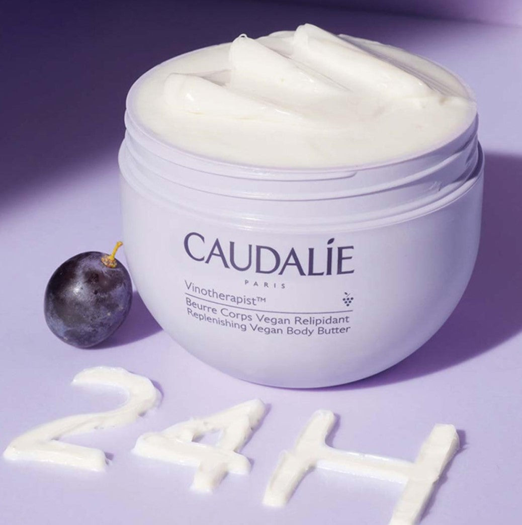 Caudalie Vinotherapist™ Replenishing Vegan Body Butter -vartalovoide sisältää rypäleensiemenöljyä, ekologista karitevoita ja egyptintokopuuöljyä. Se ravitsee ihoa intensiivisesti 24 tunnin ajan, rauhoittaa kutinaa ja korjaa atopiaan taipuvaista ihoa antaen pitkäkestoisen miellyttävän tunteen.