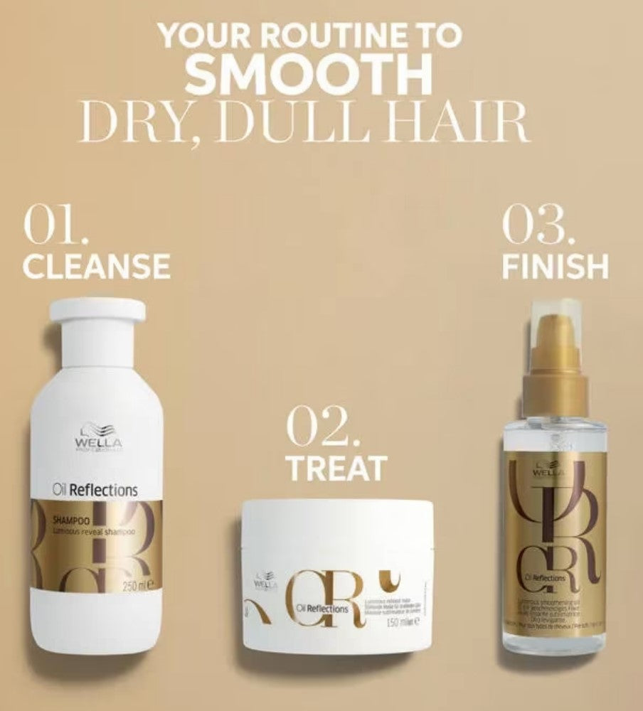 Hiukset ovat pehmeät, sileät ja hehkuvan kiiltävät – kuin salonkikäsittelyn jälkeen. Wella Professionals Oil Reflections tekee hiuksista terveemmännäköiset ja upean eloisat, jokaisella käyttökerralla.